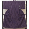 しなやかな手触りの小さな紬糸を織り込んだ越後紬織り生地で、くすんだ赤紫色と白ネズ色で麻の葉柄を織った品。八掛けは正絹黄赤色無地で胴裏は正絹が付いた手縫い仕立て。