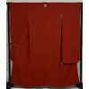 確りとした良い手触りの小さな縦シボを織り込んだ紋意匠生地を深いエンジ色無地で染め上げた品。八掛けは正絹くすんだ紫色無地胴裏は正絹が付いた手縫い仕立て。衿裏にはくるみホックが付いています。袖振りと上前オクミに正絹納戸色の比翼が付いています。コシノヒロコ監修、下前オクミに作家名があります。