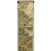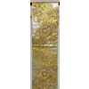 確りとした張りのある佐賀錦の織りで、くすんだ金色の地織りに、道長取り蜀江文様や花などの柄を金糸金箔と青緑色にくすんだエンジ色などを加えて織った品。