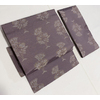 確りとした張りのある錦の織りで、くすんだ薄紫色に金糸を霜降りに織り、花柄を白ネズ色と金糸で織った、全通柄の品。