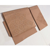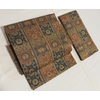 確りとしたスベリの良い塩瀬の生地で、更紗の柄を金茶色に鉄紺色や黄赤色とモスグリーン色と金彩を加えて染めた、全通柄の品。