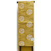 確りとした手触りの金茶色のポリエステル錦の地織りに、市松取り丸若松と波の柄を金糸と白ネズやモスグリーン色・黄赤色・などで重ね織りした品。京袋仕立て。