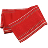 張りのある手触りで細糸で確りと打ち込まれたくれない色の本袋博多織り地織りに、縦縞取り傘の柄を地色や生成り・鳩羽紫・金茶などで重ね織りした品。