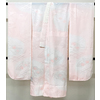 しなやかな手触りの流水花柄を織り込んだ紋綸子生地で、淡いピンク色で濃淡暈しに染めた品。正絹通し裏が付いた袖無双の袷仕立て。手縫い仕立て。