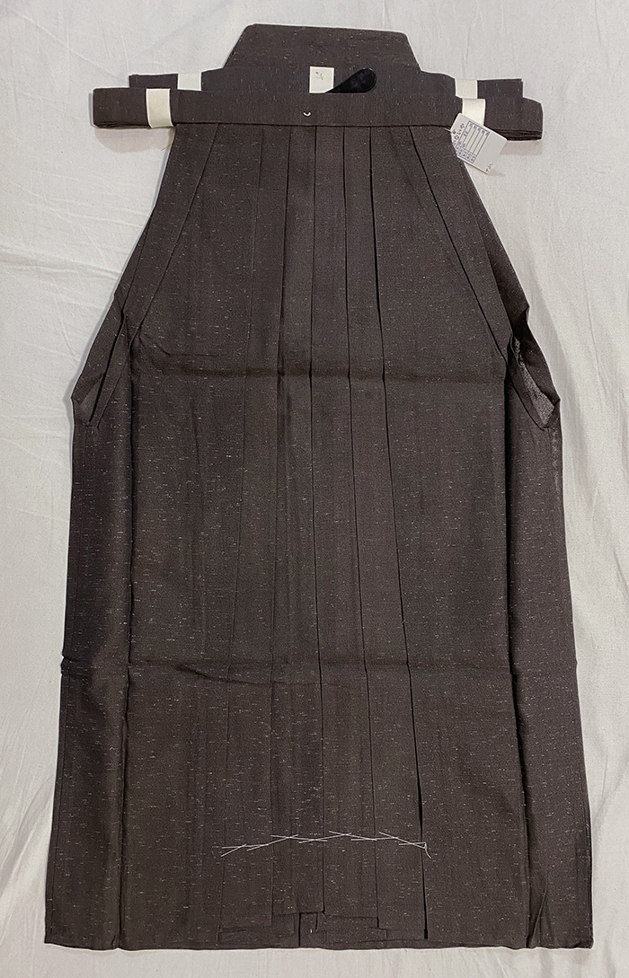 薄手でしなやかな手触りの小さなフシを織り込んだ紬の地織りに、渋いこげ茶色に少しの白糸を霜降りに織り上げた品。