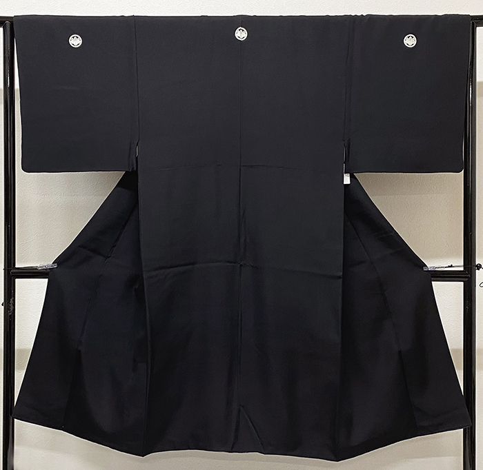 しなやかな良い手触りの上質な羽二重の生地を黒無地で染め上げた品。正絹黒の通し裏が付いています。手縫い仕立て。