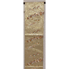 張りのある手触りで確りと打ち込まれたベージュ色の薄手の錦地織りに、キリバミと天井花鳥紋の柄を青ネズやローズ色に金糸・金箔を加え重ね織りした品。