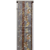 張りのある手触りで確りと打ち込まれた小さなウロコ柄を金糸で重ねたベージュと薄藤に珊瑚色の織り分け錦地織りに、大きな波を金銀糸の唐織りで重ね織りした品。