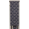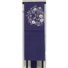 張りのある手触りで確りと打ち込まれた吹雪の地柄を織り込んだ薄手の紋綸子の生地を鉄紺に地染めし、花柄を紫みの白ネズで重ね染めした品。 |