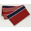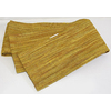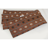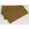 張りのある手触りで細糸で確りと打ち込まれた金茶の錦地織りに、横段縞柄を鉄紺やエンジ色で重ね織りした品。裏面は、表と同じ地織りで、縞柄を金茶・エンジ色などで重ね織りした品。