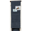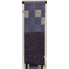 しなやかな良い手触りの小さな凹凸を横段に織ったくすんだ青ネズの地織りで、お太鼓の四角取り花柄を白ネズ色や水色とエンジ色や小豆色などで織った品。手先まで平仕立て。