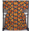 しなやかでスベリの良い小花とサヤガタを織り込んだポリエステル生地で、黒の地色に、大きな花柄を華やかな黄色や黄赤色に少しの緑色を加えて染めた品。八掛けはポリエステルエンジ色無地で胴裏もポリエステルが付いています。ミシン縫い仕立て。