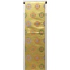 しなやかな手触りの良いポリエステル織りで、黄赤色の地織りに、竹と花柄を金糸にウグイス色や銀糸などを加え織った品。京袋仕立て。