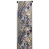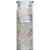 張りのある手触りで確りと打ち込まれた錦織りで、薄グレー色に銀の波柄を少しのフクレ織りで重ねた地織りに、脇取り流水取り花柄を赤みのピンク色や・黄緑色・藤色・金糸などで重ね織りした品。