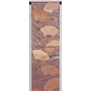 シャリ感のある手触りで確りと打ち込まれた珊瑚色の紗織り地織りに、お太鼓の金の引き箔の上に、南天の枝葉の柄をこげ茶や納戸色などに、金や銅色の引き箔を加え重ね織りした品。