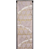 シャリ感のある手触りのベージュに金の引き箔を重ねた紗織り地織りに、竹節の斜線格子の柄を緑青色の色箔糸に金糸を加え重ね織りした品。
