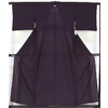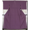 シャリ感のある手触りの絽織りの生地をくすんだ京紫無地で染め上げた品。背伏せは共生地返しで、正絹白絽の衿裏が付いた手縫いの単衣仕立て。