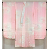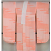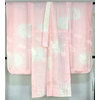 スベリの良い手触りで光沢のある立涌華紋の地柄を織り込んだ紋綸子の生地をくすんだ薄い朱鷺(とき)色無地で染め上げた品。背伏せは別生地が付いた袖無双の単衣仕立て。
