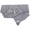 張りのある手触りで確りと打ち込まれたポリエステル銀ネズ平紬の地織りに、縞柄を瑠璃色で重ね織りした、あんどん仕立ての品。