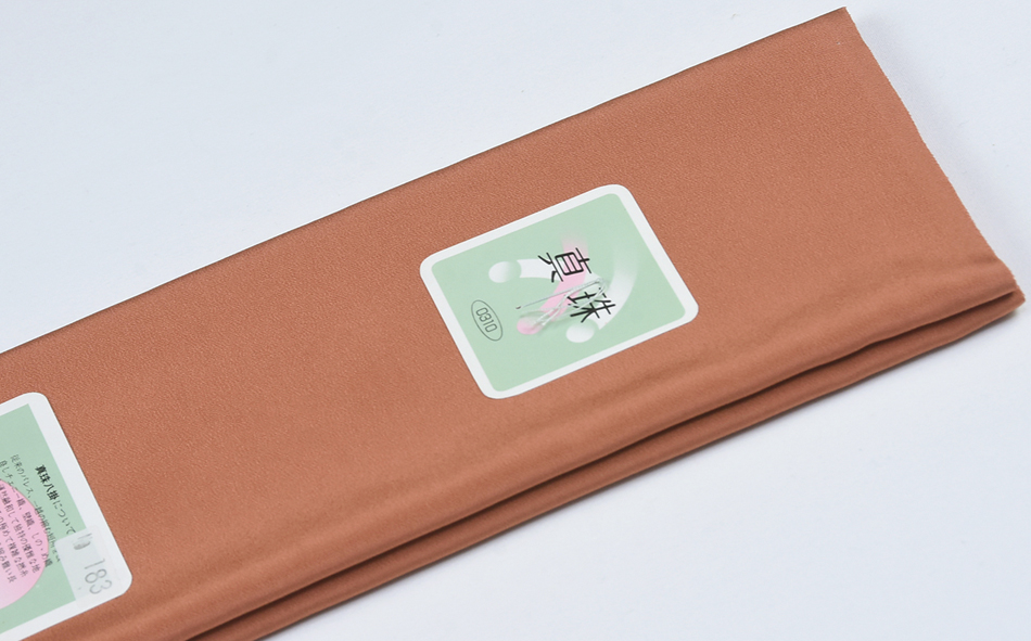 しなやかな手触りで確りと打ち込まれた精華縮緬の生地を小麦色無地で染め上げた品。